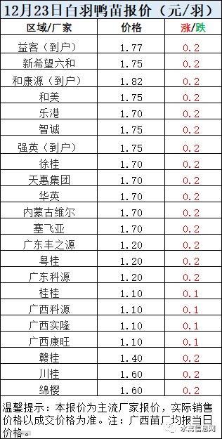 一、12月23日白羽鸭苗报价
