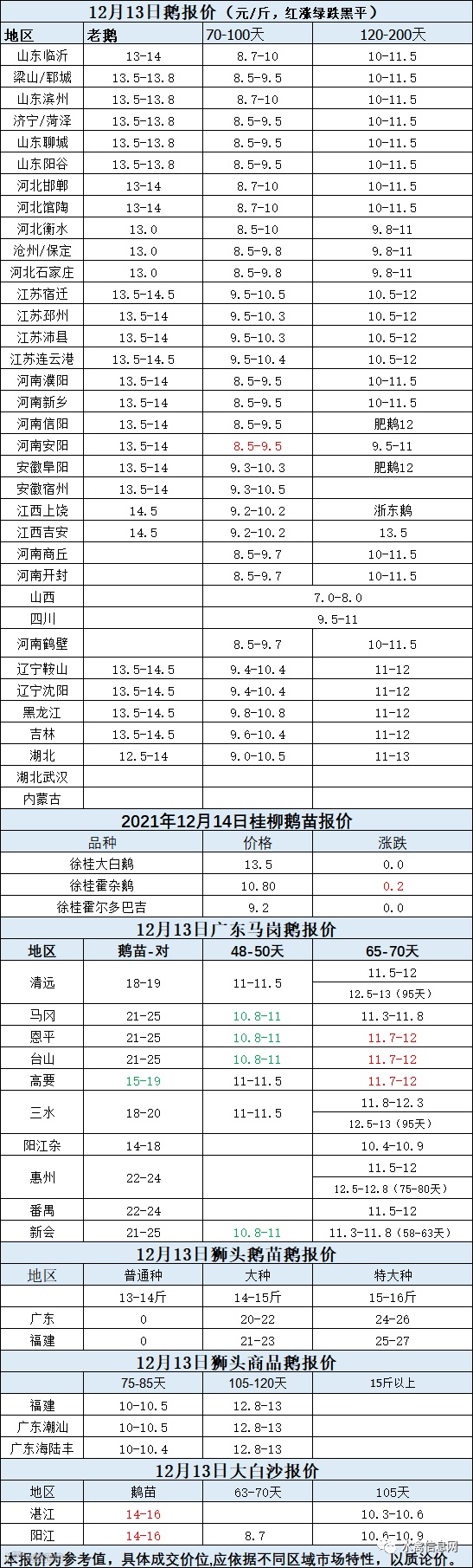 2021年12月13日各品种鹅苗价格