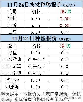 一、11月23日晚至11月24日 白羽肉鸭报价