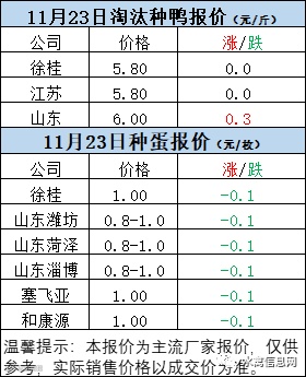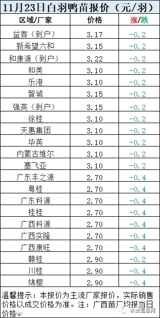 一、11月23日白羽鸭苗报价