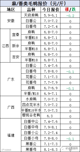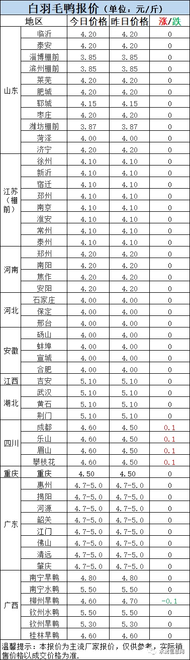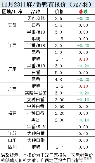 明日麻鸭苗报价逆势走强整体上涨。半番鸭苗报价下滑。