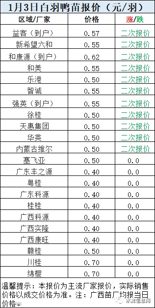 一、1月2日晚至1月3日 白羽肉鸭报价
