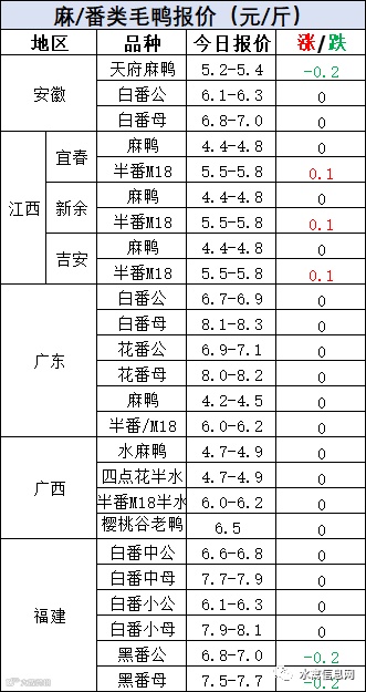 明日麻鸭苗报价低位反弹0.1元/羽。半番鸭苗报价稳定。