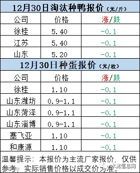 一、12月30日白羽鸭苗报价