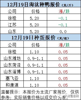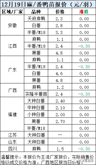 一、12月19日白羽鸭苗报价