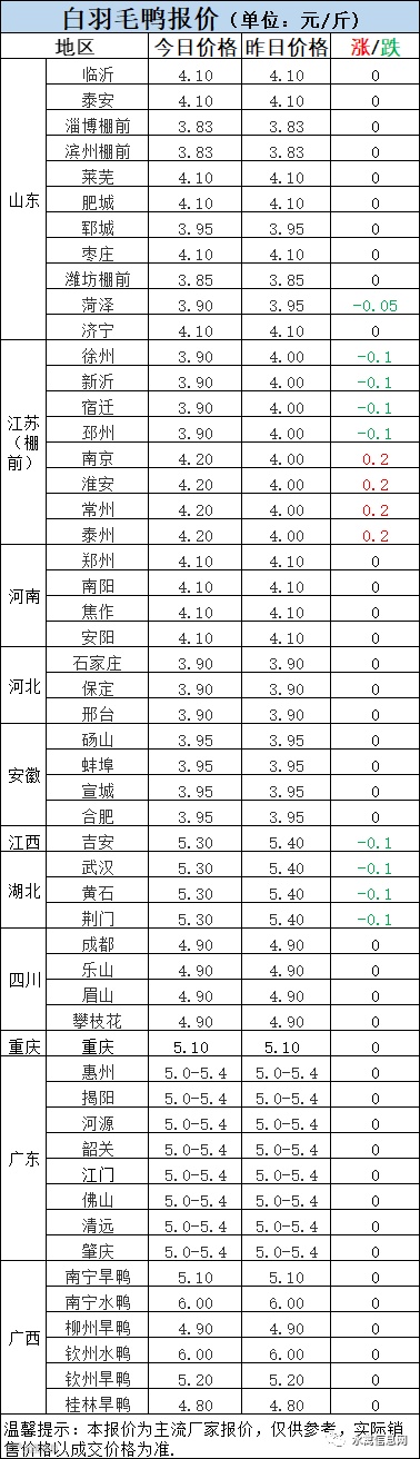 2:南方白鸭活禽报价落后持稳,局部仍有下调。