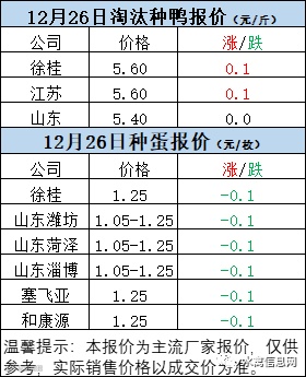 一、12月25日晚至12月26日 白羽肉鸭报价