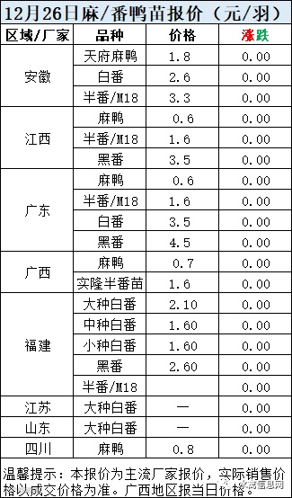 一、12月26日白羽鸭苗报价