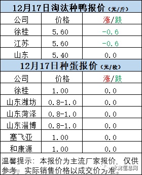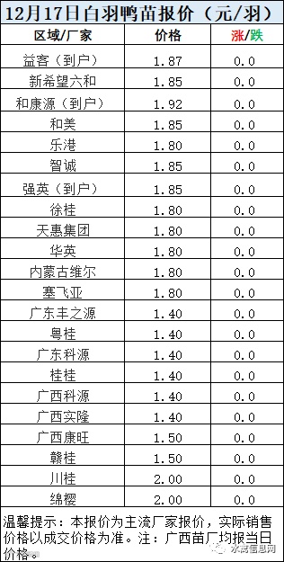 一、12月16日晚至12月17日 白羽肉鸭报价