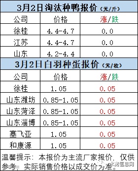一、3月1日晚至3月2日 白羽肉鸭报价