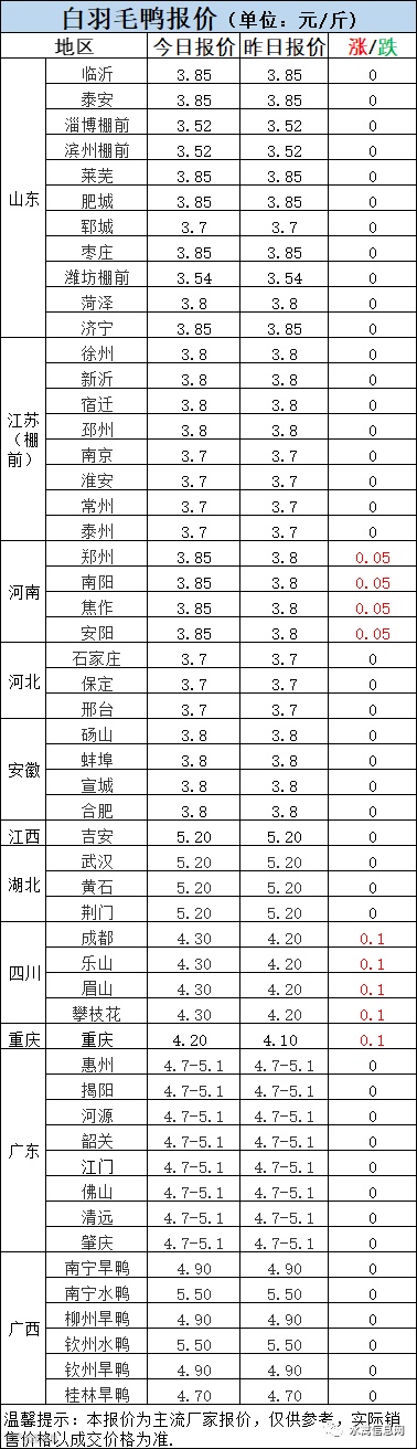 今晚北方毛鸭报价跌宕调整,局部上涨。毛鸭略有走强主要来源于成本压力,但综合来看上涨幅度有限。