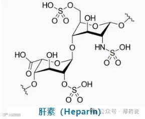 肝素,又名普通肝素,是从猪肠粘膜或牛肺中提取精制的一种硫酸氨基葡聚糖。普通肝素是一种混合物,分子量范围为3000~30000KD。