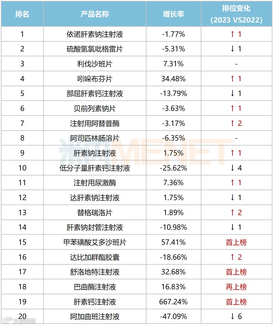 2023年重点省市公立医院抗血栓形成药TOP20产品
