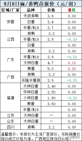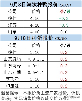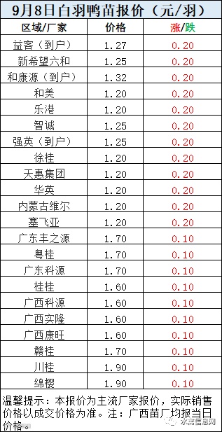 一、9月8日白羽鸭苗报价