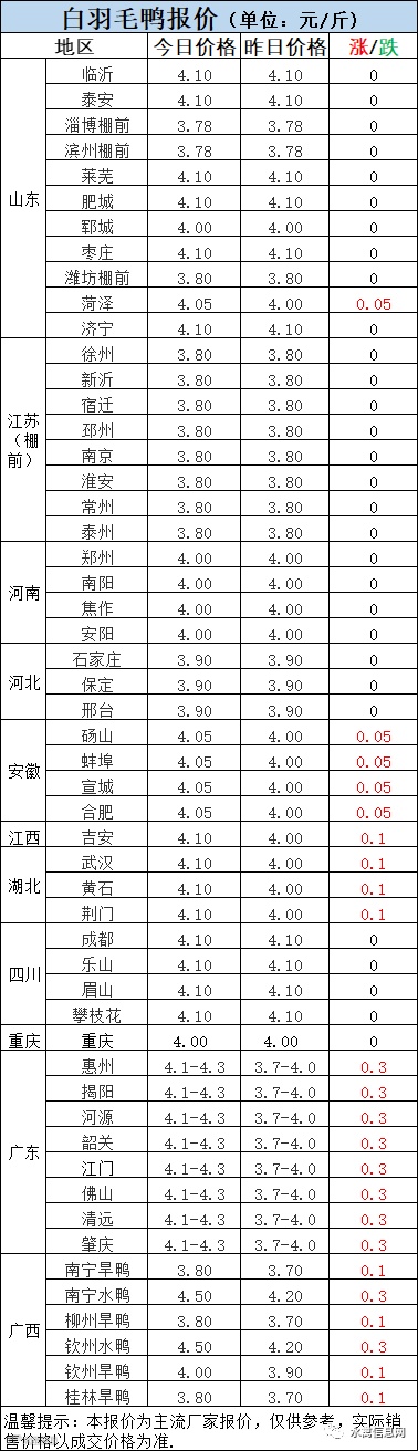 2:南方白鸭活禽今晚报价连续上涨,逐步摆脱颓势。