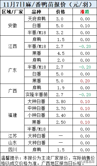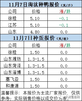 一、11月7日白羽鸭苗报价