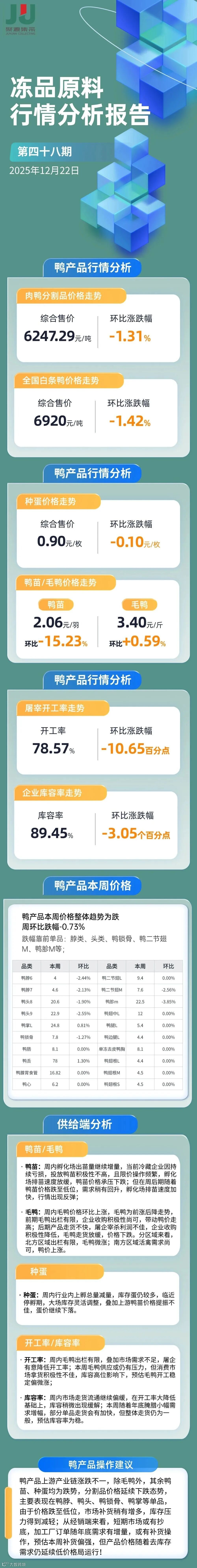 2025第48期冻品原料(鸭鸡猪牛)行情走势分析报告
