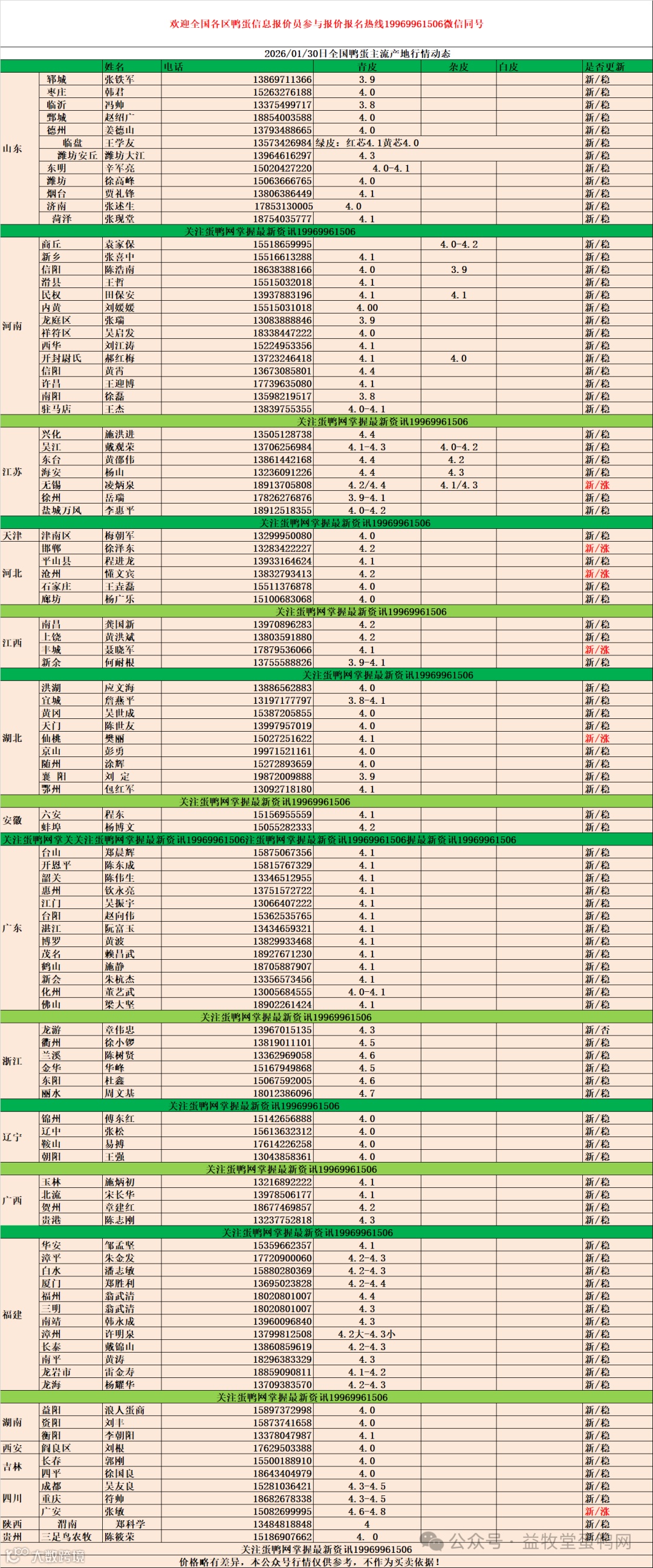 2026年1月30日商品鸭蛋报价 益牧堂水禽信息