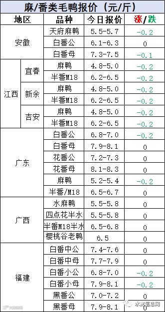 明日麻鸭苗报价波动上涨1毛。半番鸭苗继续下滑。