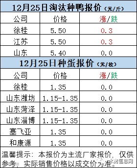 一、12月24日晚至12月25日 白羽肉鸭报价