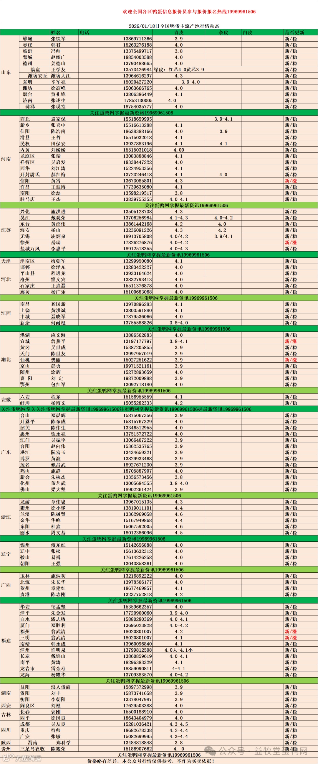 2026年1月18日商品鸭蛋报价 益牧堂水禽信息