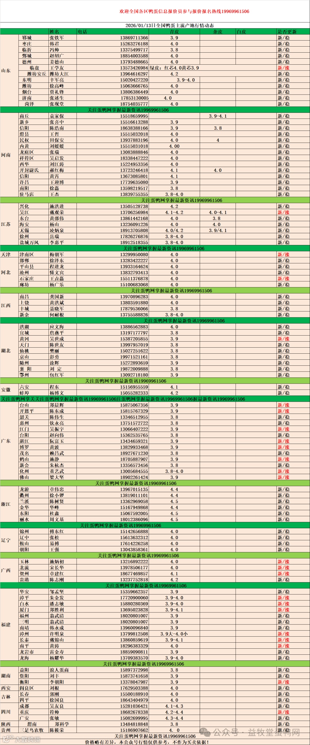 2026年1月13日商品鸭蛋报价 益牧堂水禽信息