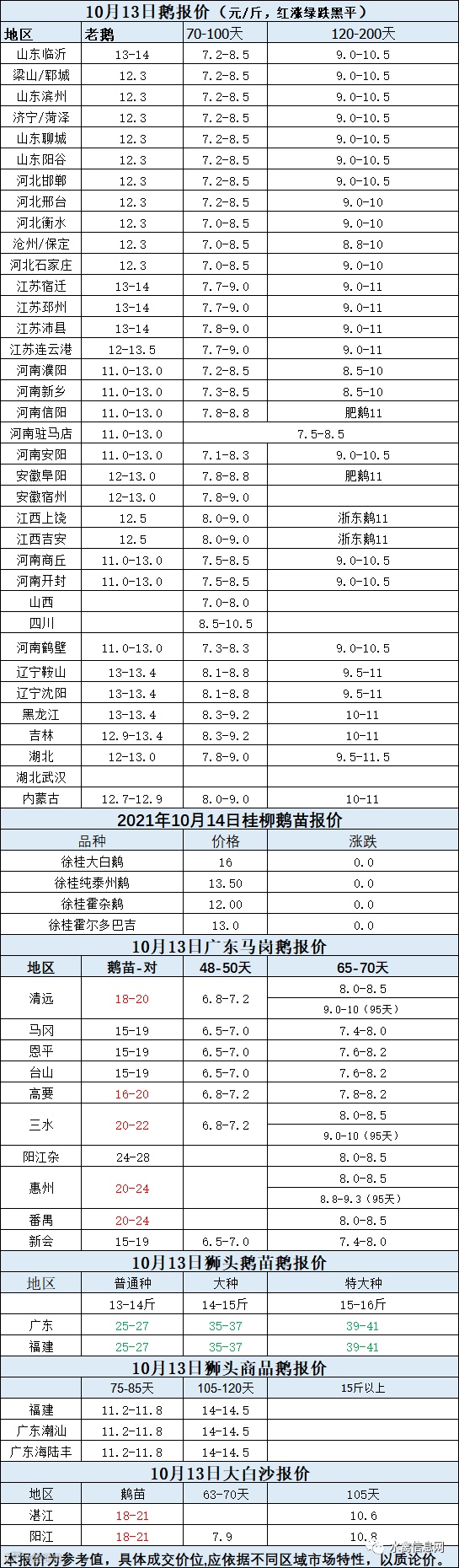 2021年10月13日各品种鹅苗价格