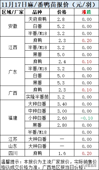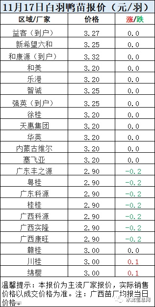 一、11月17日白羽鸭苗报价