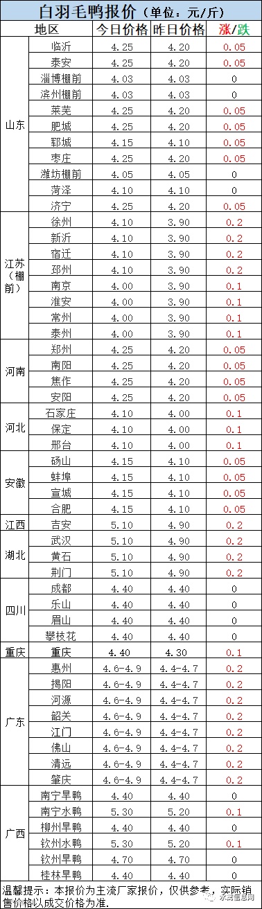 1:今晚北方毛鸭报价全面走强,整体上涨。
