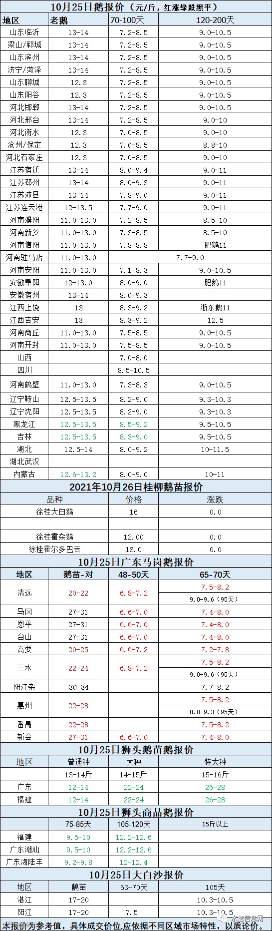 2021年10月25日各品种鹅苗价格