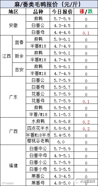 明日麻鸭苗报价下滑0.2元/羽。半番鸭苗报价大幅下滑。