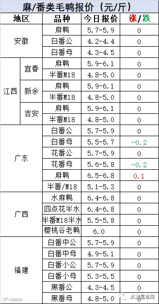 明日麻鸭苗报价局部下滑。半番鸭苗报价暂稳。