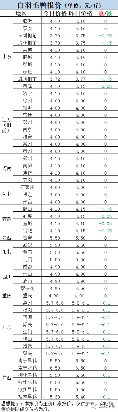 2:南方白鸭活禽今晚报价连续回调。双节来临,但仍要警惕集中出栏砸价。