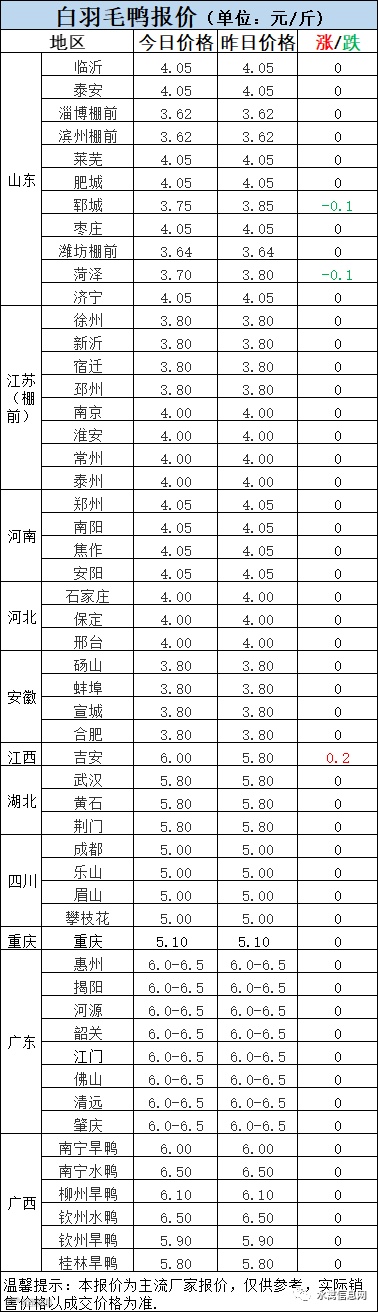 2:南方白鸭活禽今晚报价整体平稳,节后局部开始回调,今日广东白鸭整体弱势。