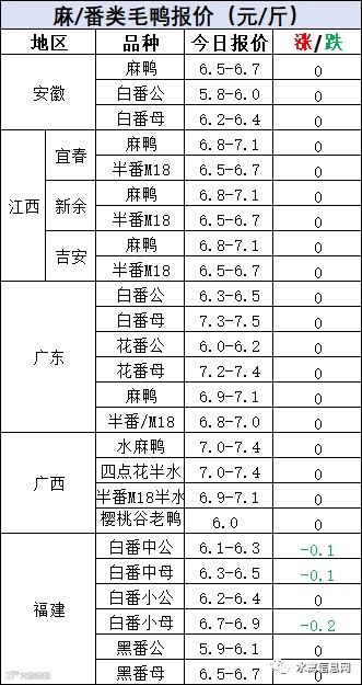 明日麻鸭苗报价稳定,半番鸭苗报价稳定。