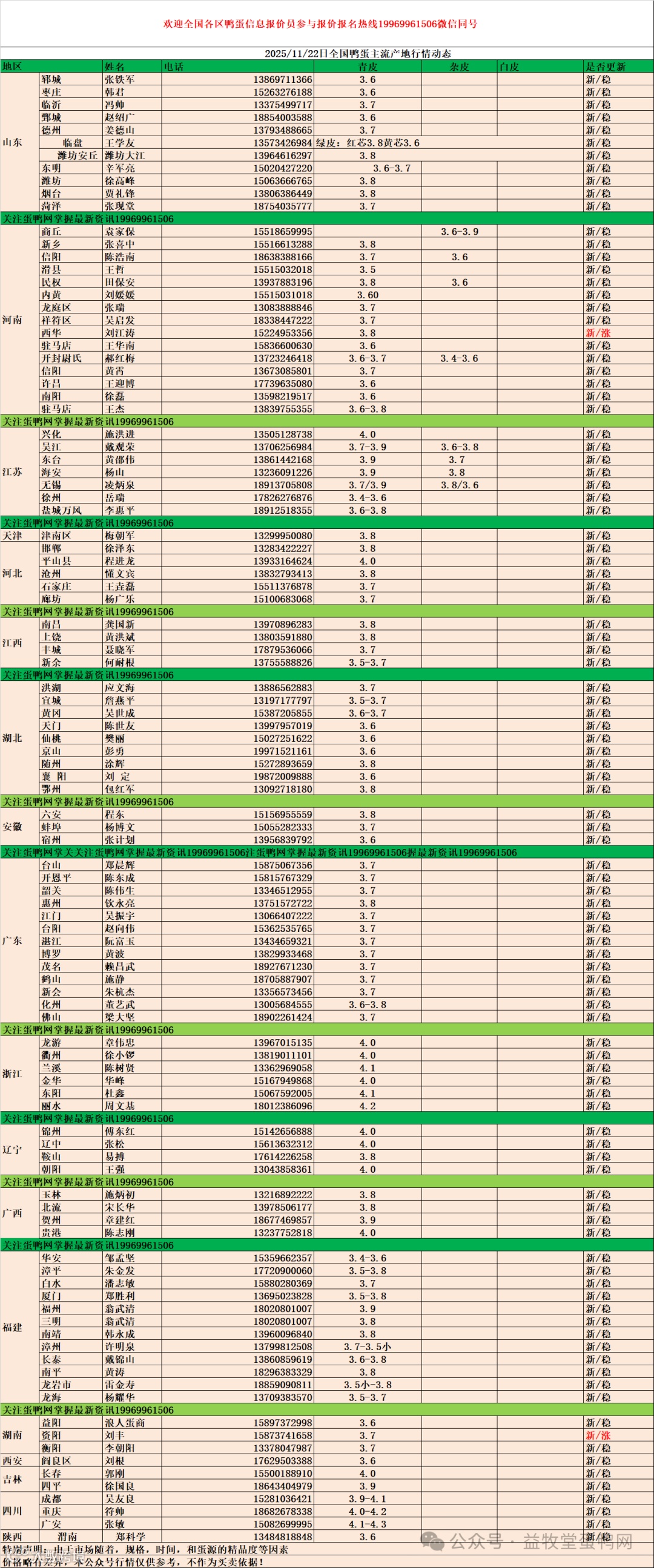 11月22:初产至10个头3.0元,10个头至8个头3.4元,8个头至7.5个头3.5元。7.5个头至7.14个头3.8元,7.14个至大蛋4.0元。