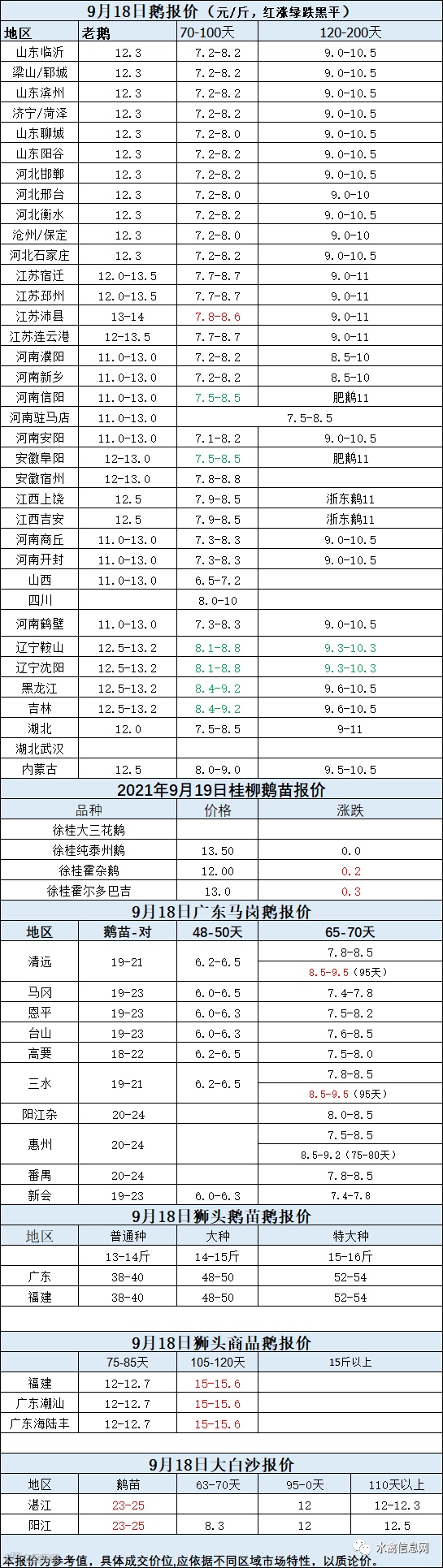 2021年9月18日各品种鹅苗价格