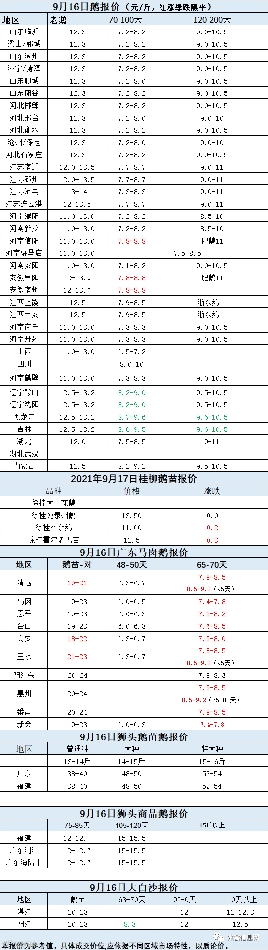 2021年9月16日鹅种蛋价格(元/枚)停报