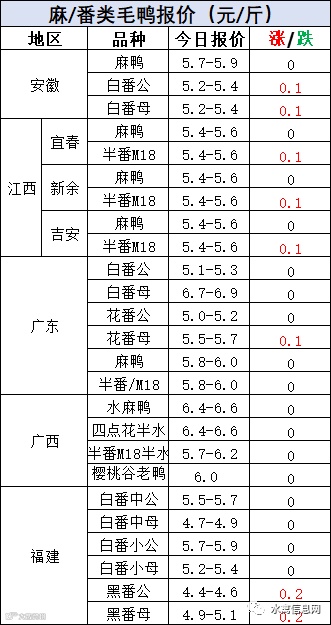 明日麻鸭苗报价稳定,半番鸭苗报价上涨0.2元/羽。