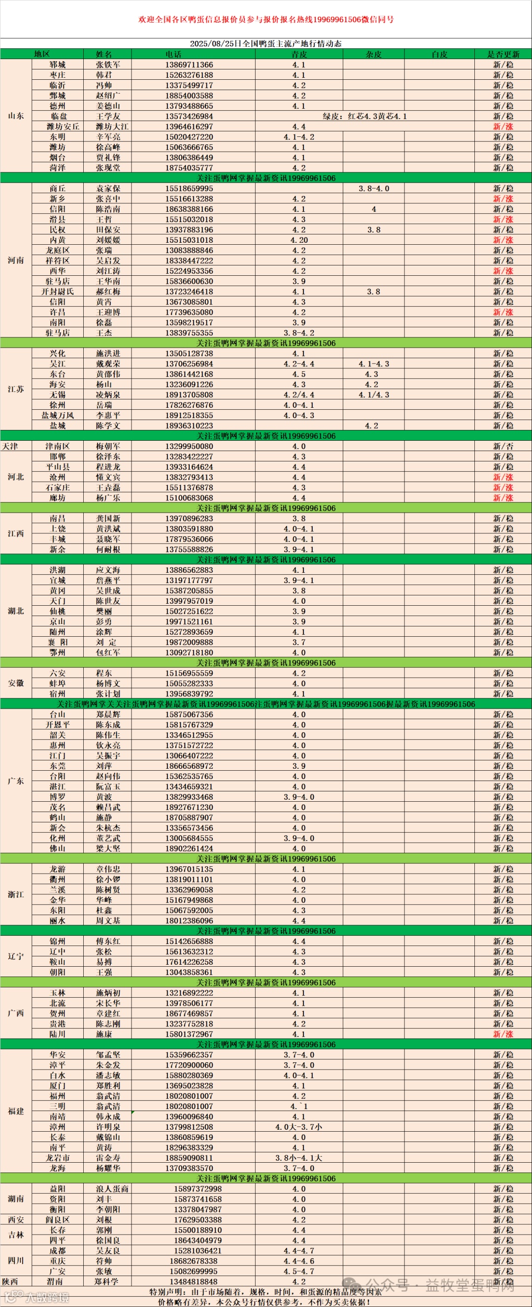 8月25日:初产至10个头2.7元,10个头至8个头3.5元,8个头至7.5个头3.9元,7.5个至大蛋4.4元。