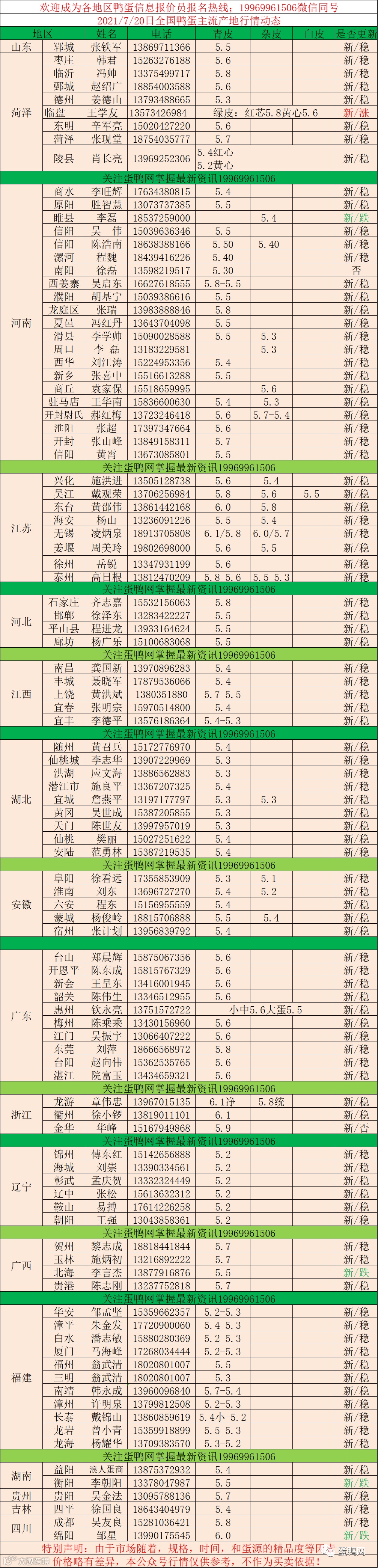 2021年7月20日鲜鸭蛋价格:初产至大蛋5.2(鸭蛋价格仅供参考)