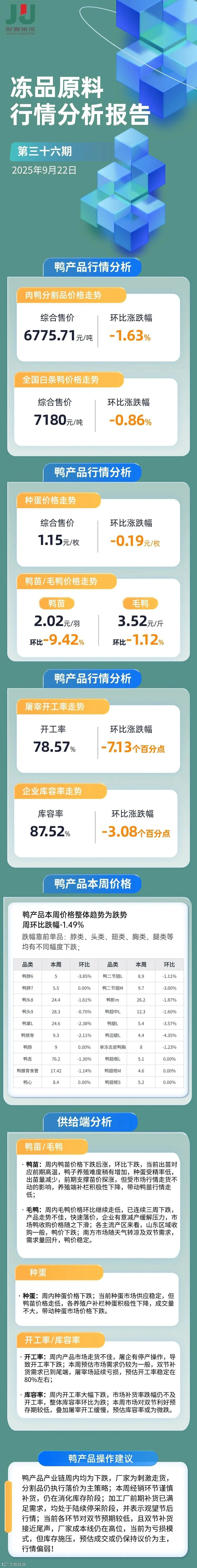 2025第36期冻品原料(鸭鸡猪牛)行情走势分析报告