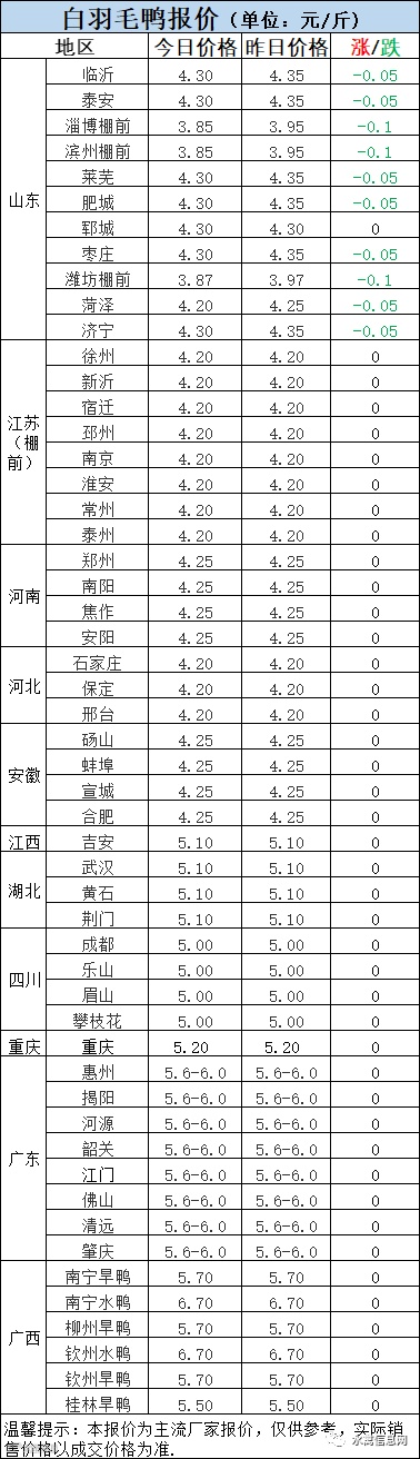 2:南方白鸭活禽今晚报价暂稳。
