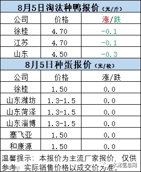 一、8月4日晚至8月5日 白羽肉鸭报价