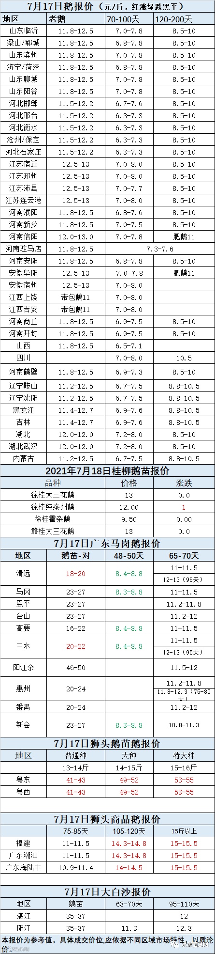 2021年7月17日鹅种蛋价格(元/枚)停报