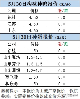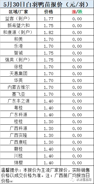 一、5月29日晚至5月30日 白羽肉鸭报价