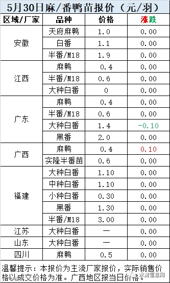 明日麻鸭苗报价稳定,半番鸭苗报价稳定。