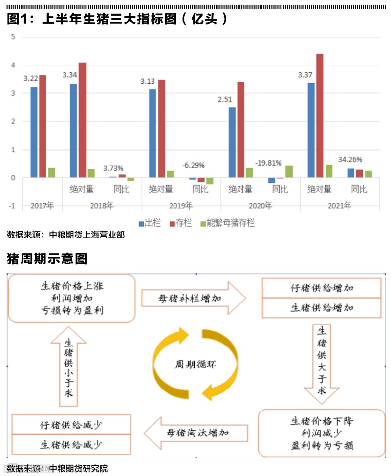 一、2021上半年全国养猪三大指标