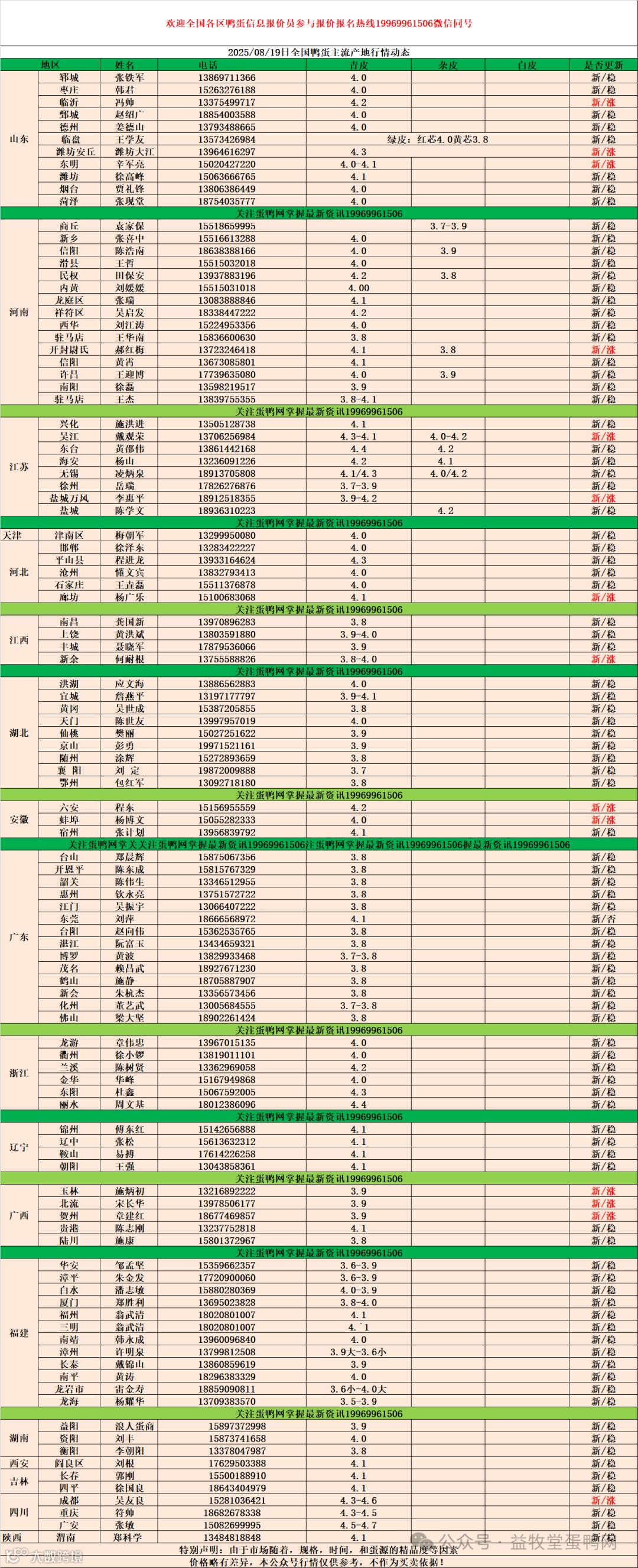 8月19日:初产至10个头2.5元,10个头至8个头3.4元,8个头至7.5个头3.7元,7.5个头至7.14个4.0元。7.14个至大蛋4.1元。