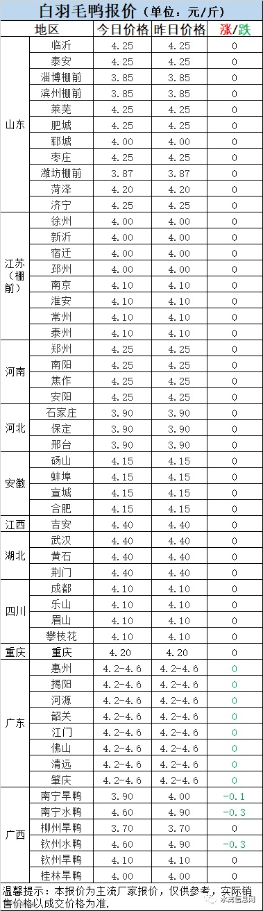 1:今晚北方分割鸭区域报价稳定。鸭病严重,出栏率略有下降。但当前冻品价格仍较压抑,传导至毛鸭端价格支撑仍不足。